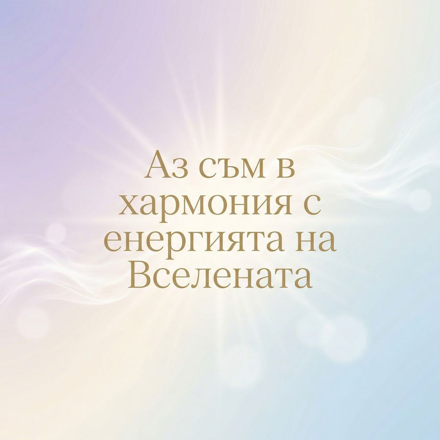 Свързаност с Вселената Аз съм в хармония с енергията на Вселената. Facebook Twitter Pinterest Messenger WhatsApp Viber