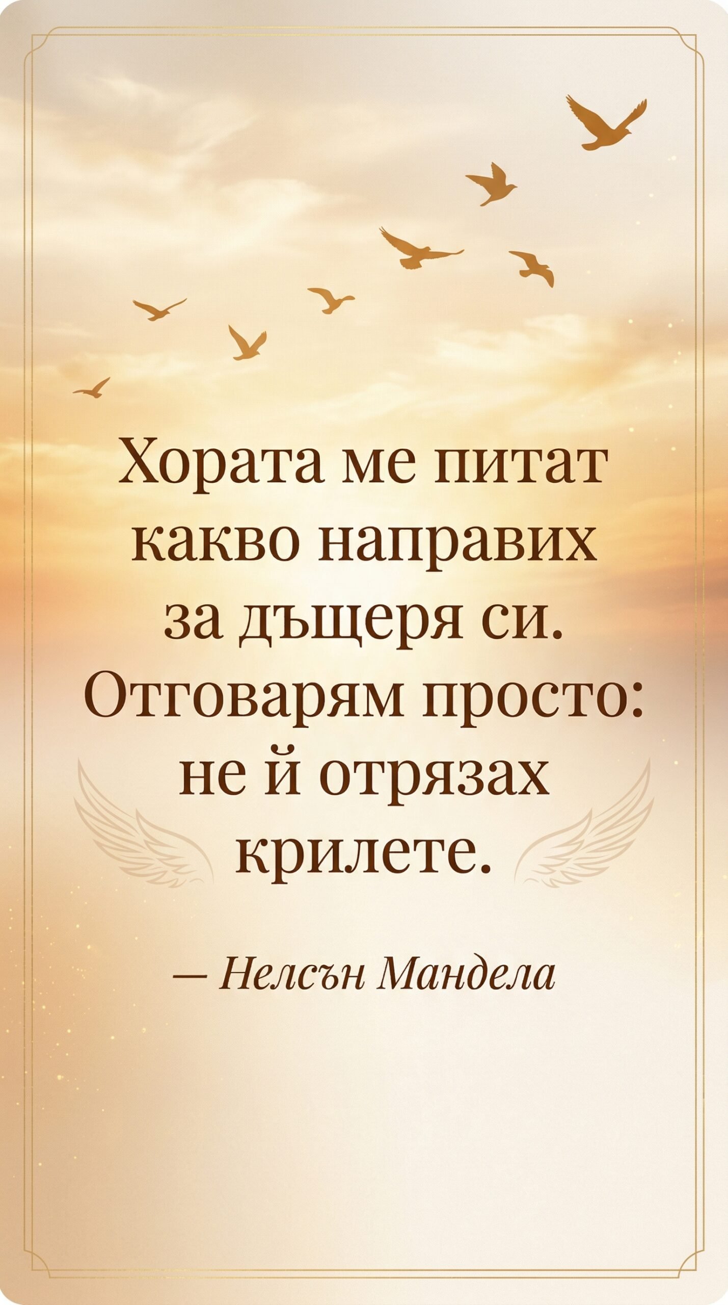 „Хората ме питат какво направих за дъщеря си. Отговарям просто: не ѝ отрязах крилете.“