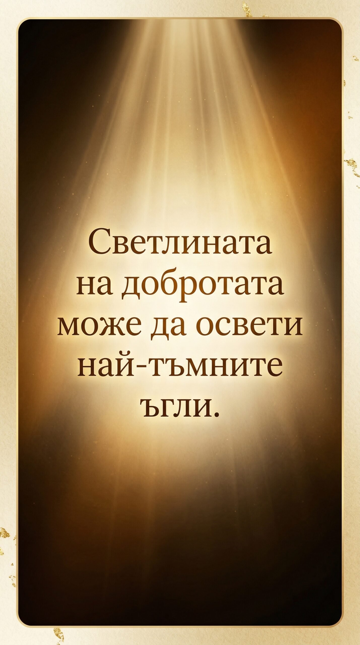 Светлината на добротата „Светлината на добротата може да освети дори най-тъмните ъгли.“ Facebook Twitter Pinterest Messenger WhatsApp Viber